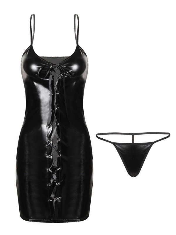 Damenmode Reißverschluss ärmelloses Kleiderständer Halsumfang Bodycon-Kleider aus Lackleder Clubwear.