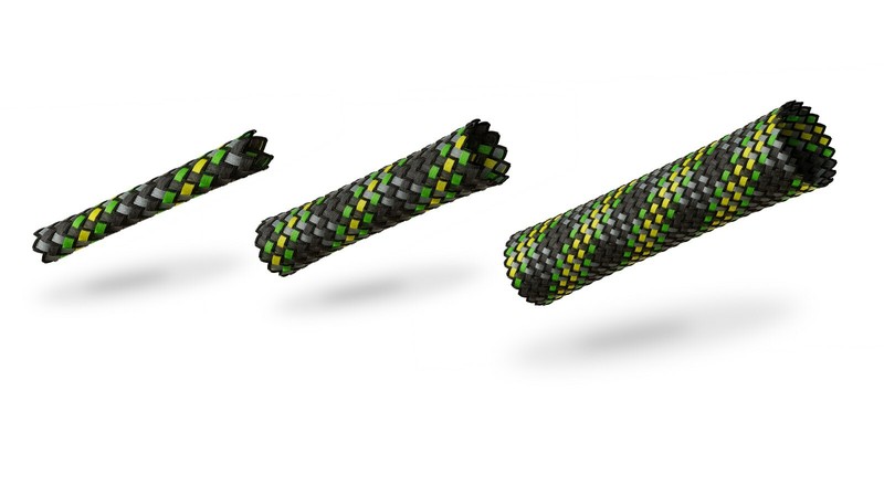 TECHNISCHE DETAILSJe größer der Ø eines Kabels desto mehr Länge wird benötigt, da sich der Geflechtschlauch durch das scherenförmige Aufweiten entsprechend verkürzt. Die folgende Tabelle zeigt einige Beispiele für Längenverhältnisse auf: |