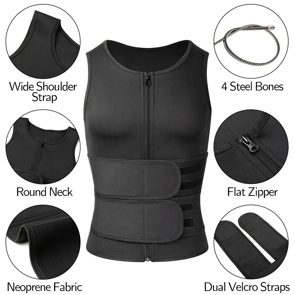 Men Sauna Sweat Vest: SWEAT THREE TIMES MORE High quality 2.0mm sweat neoprene fabric tones core by increasing thermal temperature and calorie burn to maximize weight loss performance. This waist trainer vest will stimulate sweating around your abdomen and lower back area, accelerate the belly fat burning process and help you lose water weight to shape and reduce the waist and abdomen, and get a strong core and really great abs!