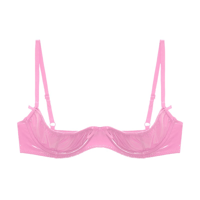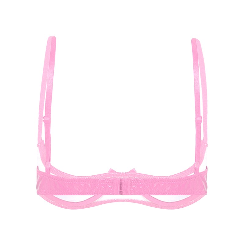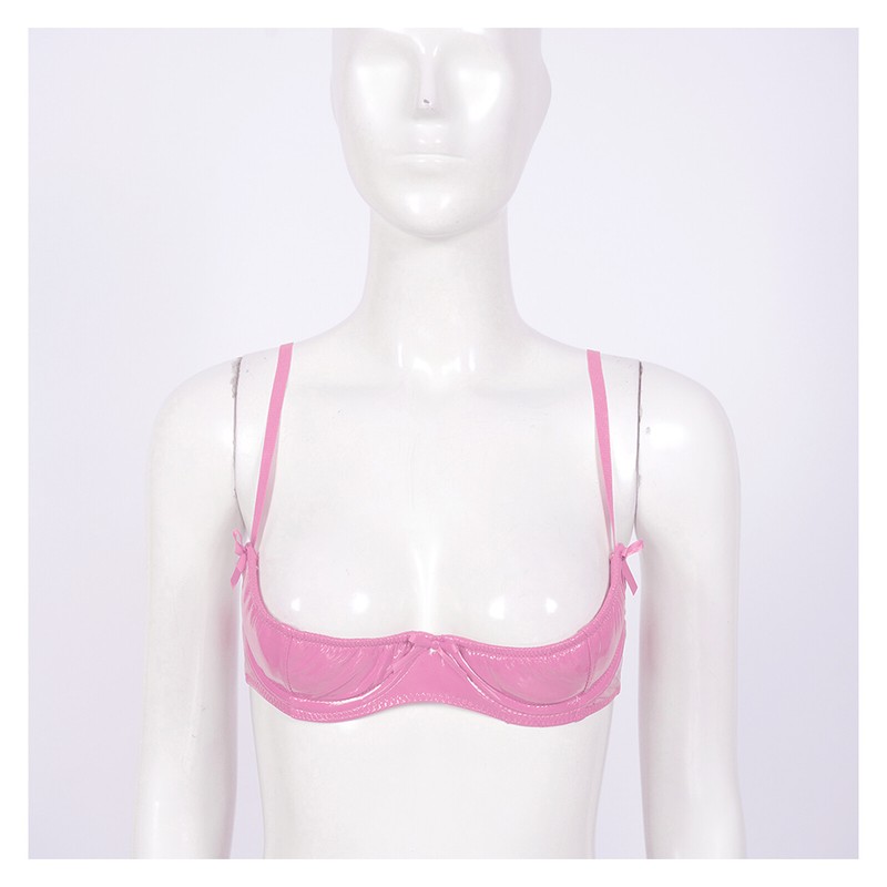 Womens Patent Leather Open Cup Bra Adjustable Wide Shoulder Wet Look Lingerie