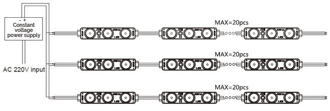 Attentions before installation: • Before installation, check that the product parameters are consistent with the requirements (Seeing product specificationsor product labels) • Load voltage, current, power and power supply should be matched with the product. • Follow the instructions of wiring diagram (first connect the load and then the power supply) to avoid short circuit. • Make sure the correct connection of positive and negative poles between products and power supply. Otherwise, the light will not be on. • Make sure the power cord firmly screwed into the terminal and it should not be pulled out by hands. • The terminal should have insulation,waterproof and anti-corrosive treatment.