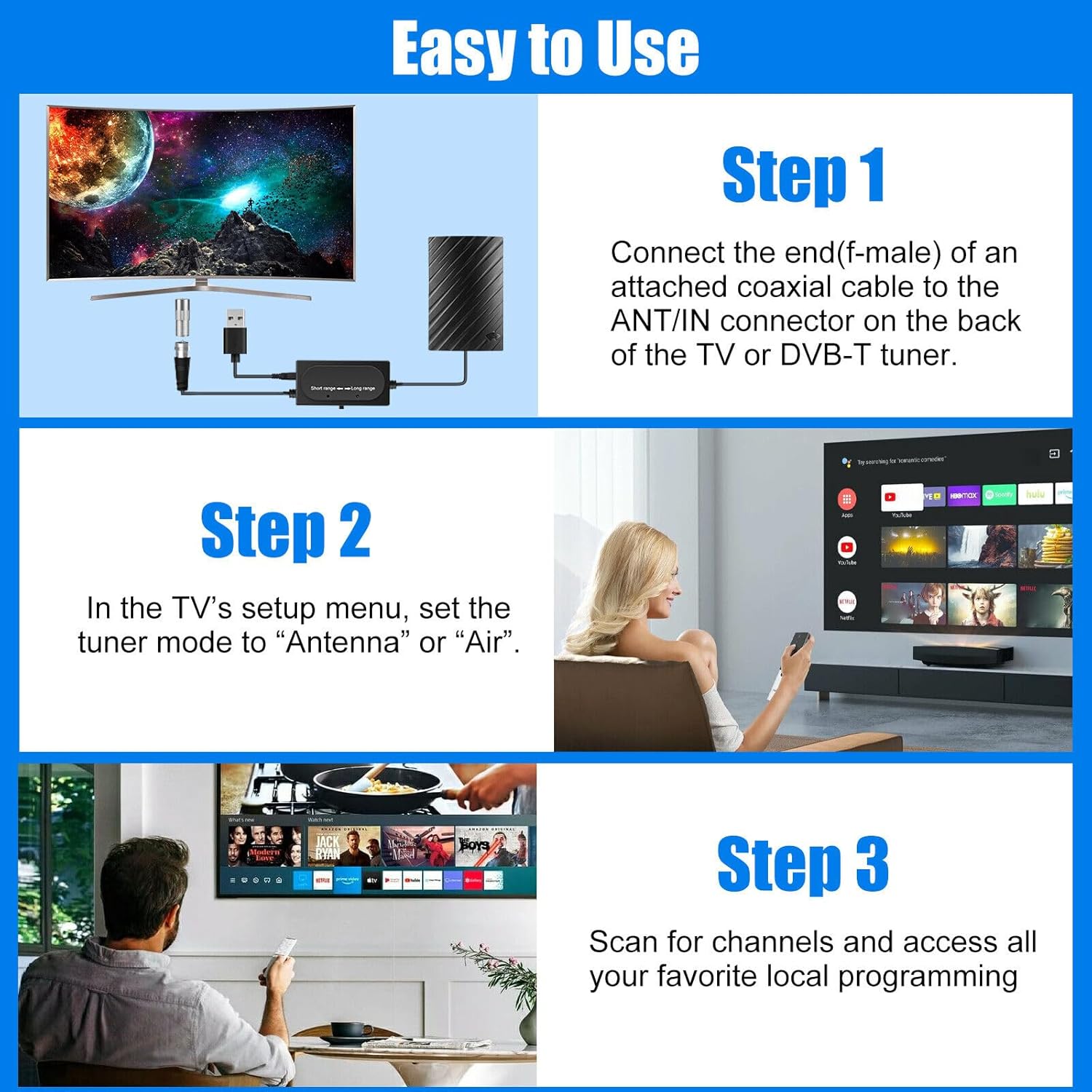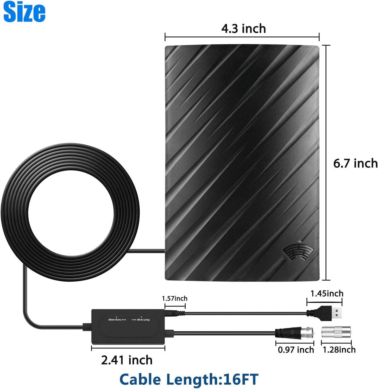 This indoor/outdoor tv antenna can receive 5600+ miles range for local channels, and comes with 16ft coxial cable, you can place this tv antenna anywhere, which suitable for living room, bedroom, basement, rv and so on.