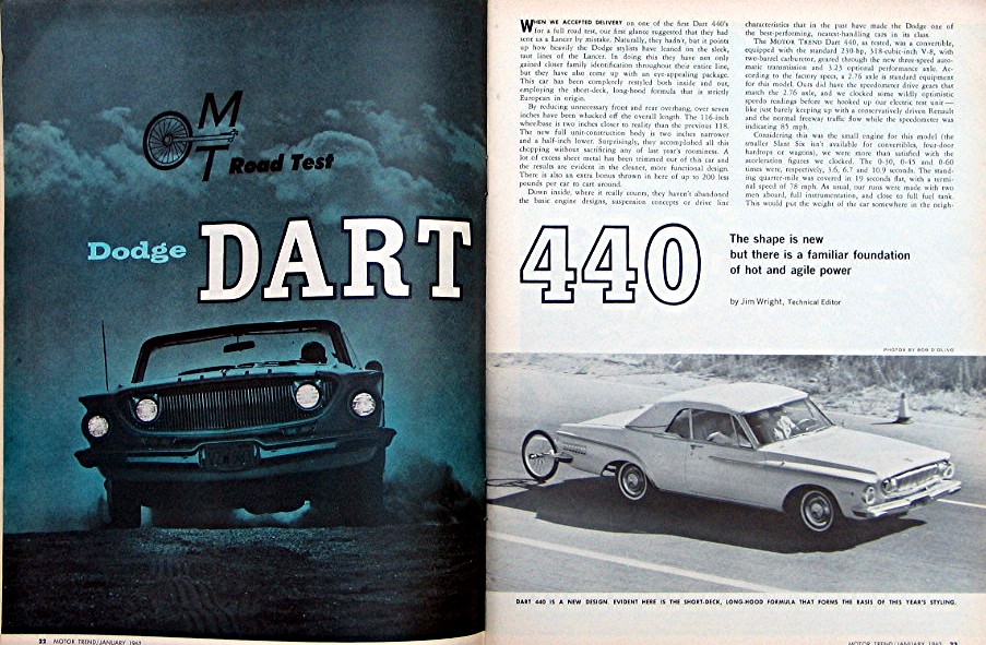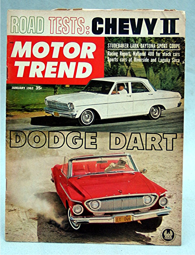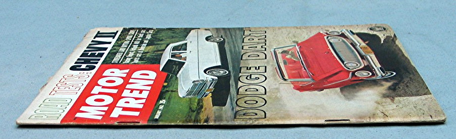 Cover has picture of a couple cars... Cover reads, "Motor Trend -- Road Tests; Chevy II - Dodge Dart -- Studebaker Lark Daytona Sport Coupe"... Magazine is in good condition, has about 84 pages of articles,
