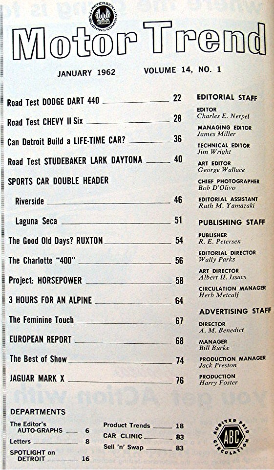 Vintage 1962 Motor Trend Magazine January...