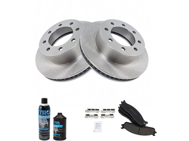 Package Contents: (2) Front Replacement Brake Rotors; (1) 12 oz DOT 3 & 4 Brake Fluid; (1) 13 oz Brake Cleaner; (1) Front Semi-Metallic Brake Pad Set with Contact Point Grease & Hardware