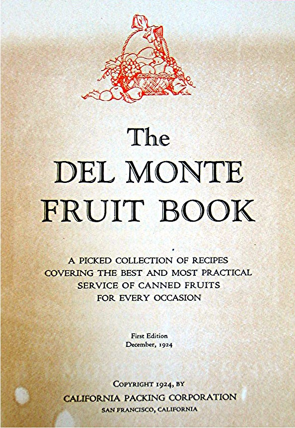 Vintage 1924 Advertising Del Monte Fruit Book...Favorite Fruit Recipes Cover has illustration of a woman serving an orange colored jello mold... Cover reads, "The Del Monte Fruit Book Containing the Favorite Fruit Recipes of America's Best Known Cooking Authorities"... Recipe booklet is in good condition, and has about 32 pages filled with recipes... Recipe booklet measures about 4 3/4" x 6 3/4"