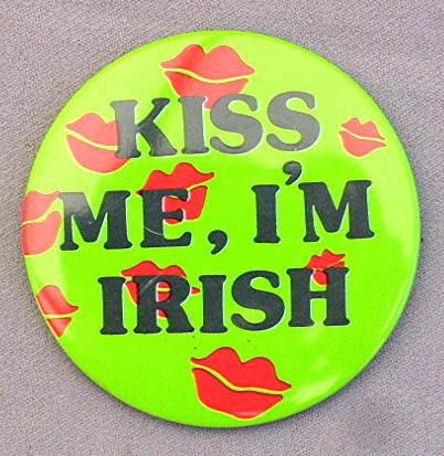 Vintage Pin Back --- Kiss Me I'm Irish... Pin back is in good condition, and measures about 2 1/2" across the diameter...