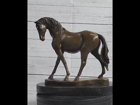 Crafted with precision and care, this sculpture is made from 100% bronze through the meticulous "Lost Wax Method." The handmade quality ensures attention to detail, bringing to life the texture of the horse's sleek coat and the dynamic movement of its limbs. The brown patina finish adds depth and warmth to the sculpture, creating a lifelike appearance. Mounted on a black marble base, the sculpture achieves a harmonious balance between the organic form of the horse and the elegance of the base. The inclusion of the artist's signature, M. Lopez, adds a personal touch and authenticates the work.