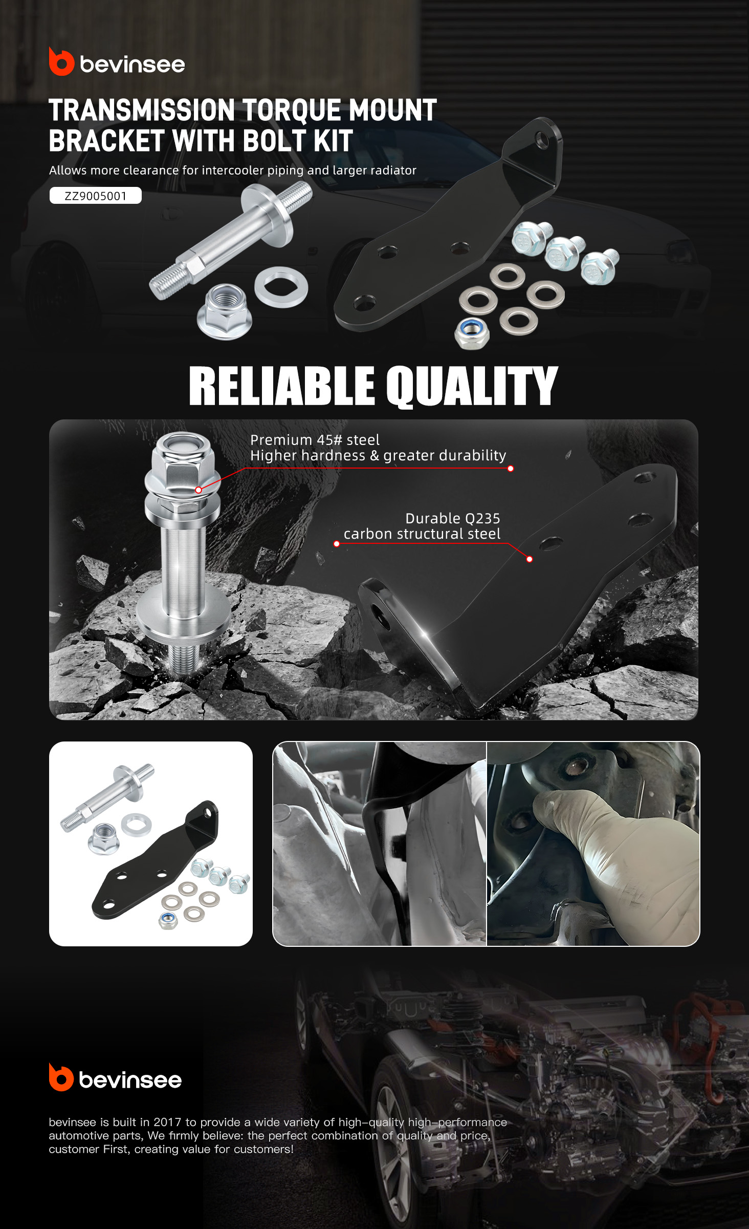 -The bolt is made from premium 45# steel with higher hardness and greater durability than the stock. The bracket is made of premium steel, super strong and durable for long-time use.