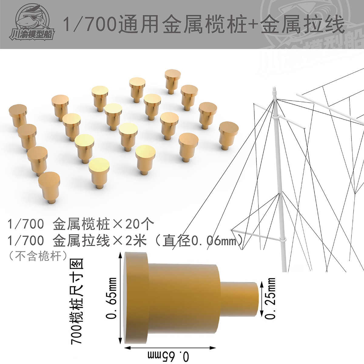 1/700 Scale Memory Alloy Rigging 2 Meter & Metal Bollard 20pcs CYG097