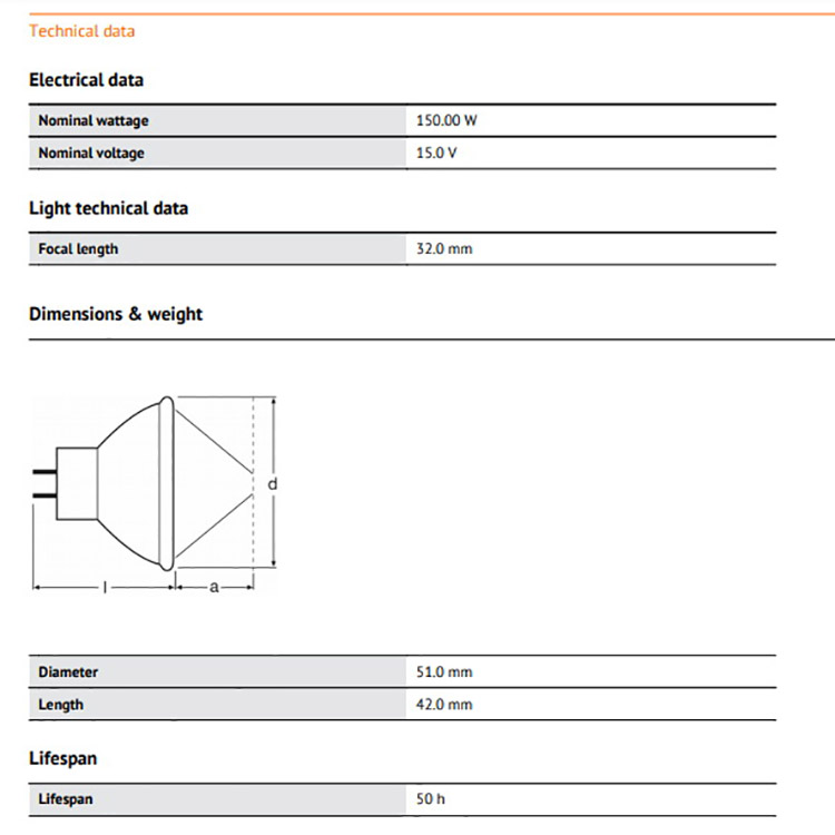 l Nominal Wattage: 150.00W
