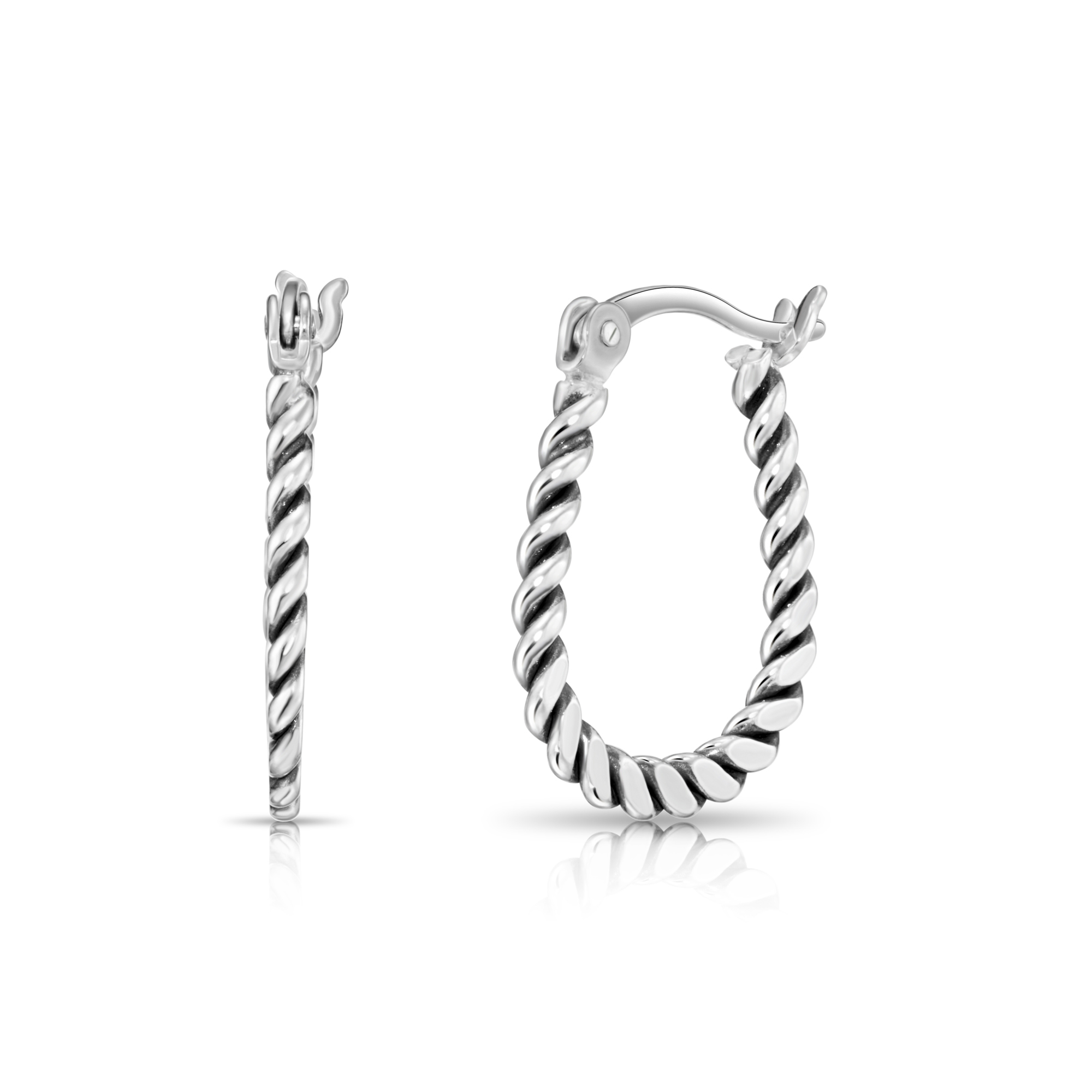 TILO Jewelry 925 Real Sterling Silver Twisted Rope Creole Small Hoop Earrings Real Solid Sterling Silver All Shiny Polished Twisted Oxidized Small Creole Hoop Earrings Women, Girls, Men, Unisex