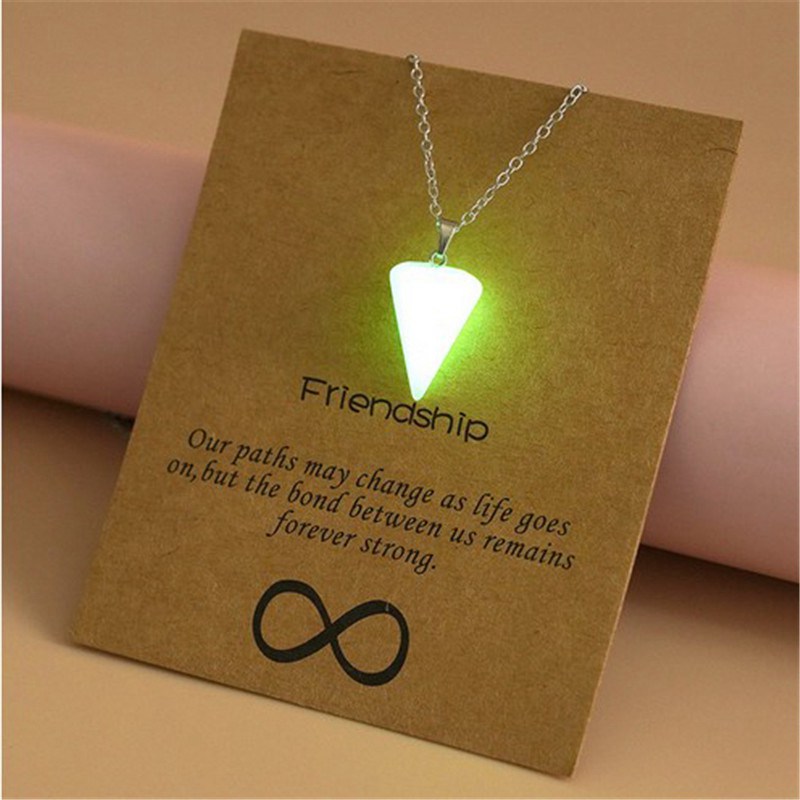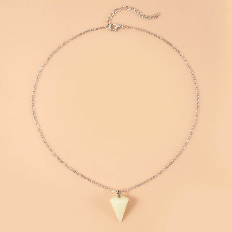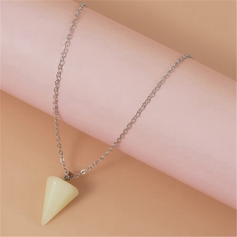 Glow in the dark chakra healing crystal bullet and heart shaped silver chain necklace Bullet chain size: Approx 43-50 cm. Heart chain size in images. Package:1Pc Pendant Necklace
