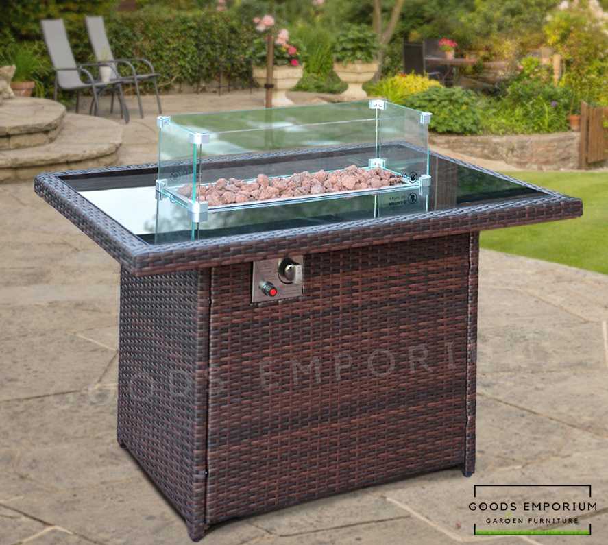 Our Goods Emporium Rattan Fire Pit Table allows you to keep your guests warm and use your outdoor furniture past the daylight hours, adding light and heat to your outdoor space. Gas fire pit tables add character and warmth to your garden whilst also making an impressive statement.