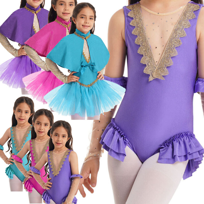 Kids Girls Shiny Sequins Tuxedo Leotard Dress Modern Dance Latin Jazz Costume