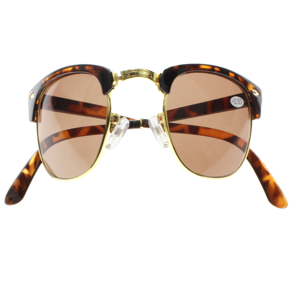 Men Women's Horn Rim Portable Folding Tinted Lens Sun Reading Glass +1.0~+4.0