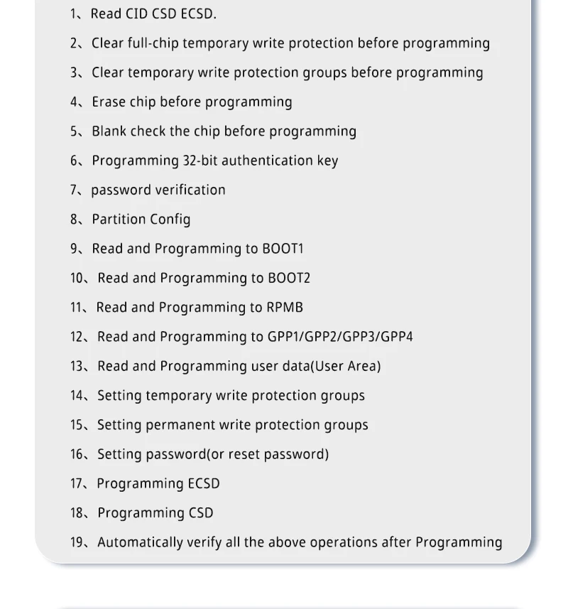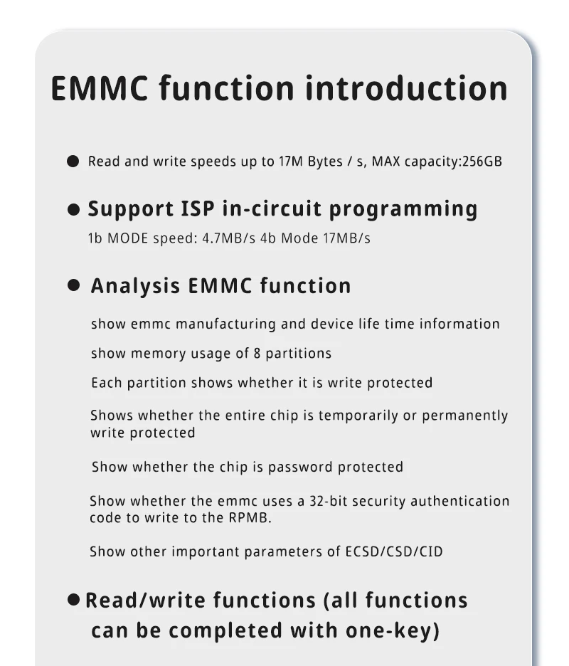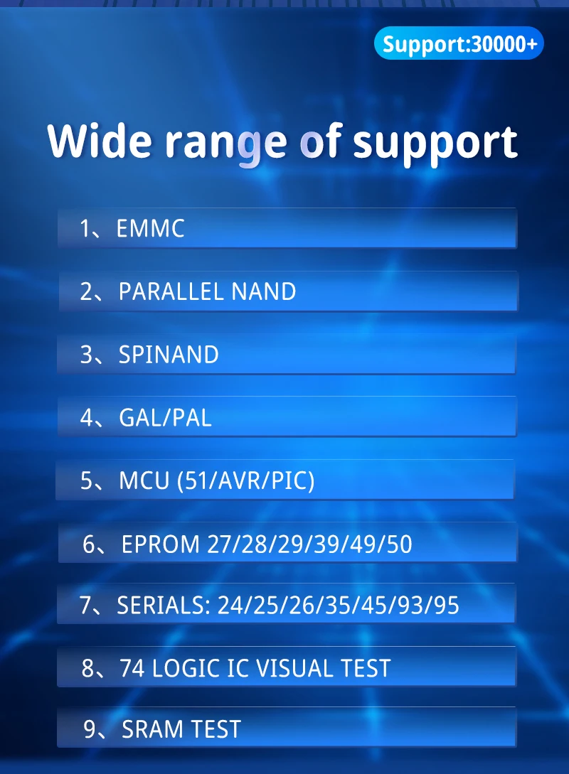 Please note: TSOP56/BGA64/DIP42 will be added future (June 17th, 2022). The new model has just been launched and the software is much to be improved, so please contact us to resolve at first if you have any questions and suggestions.