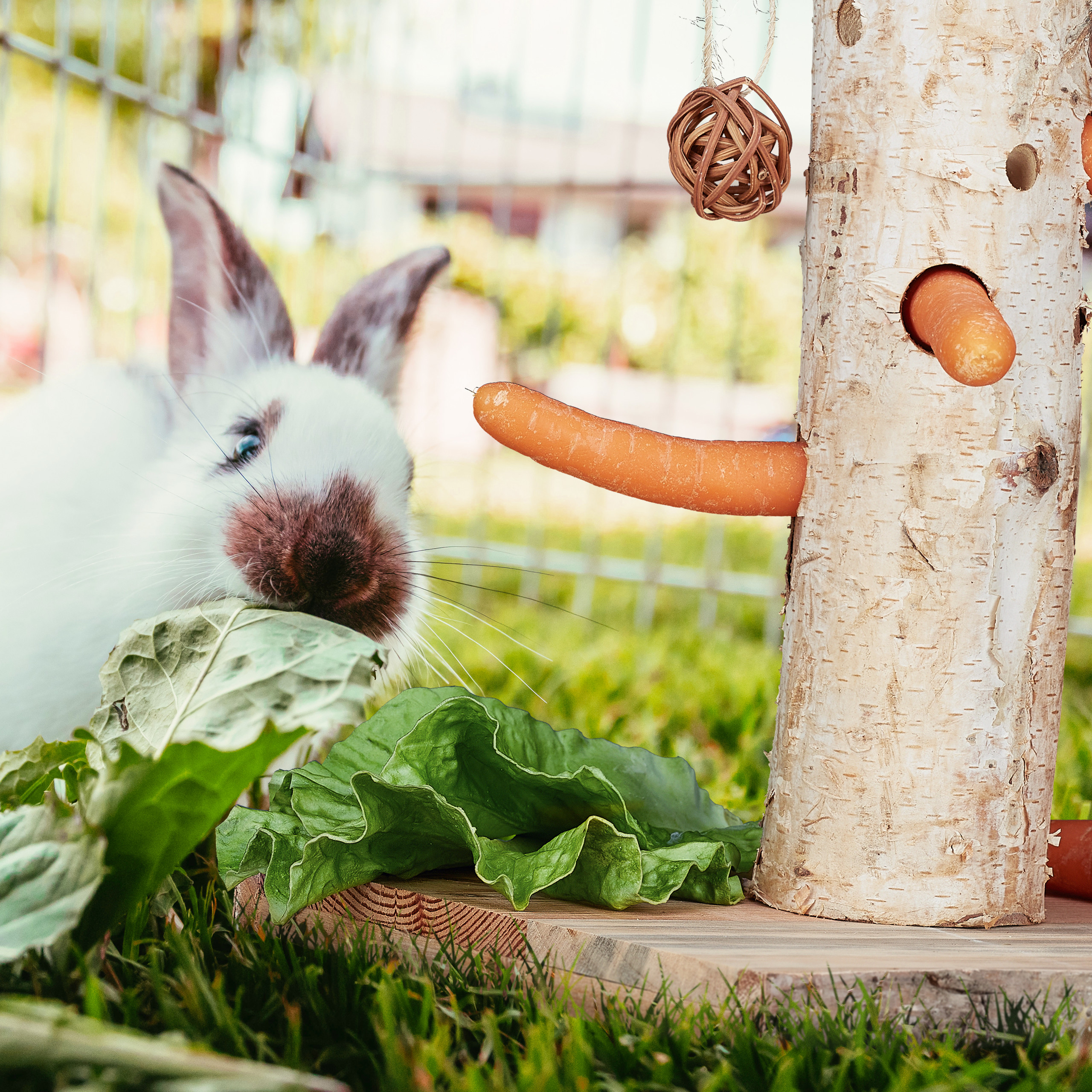 - In de voerboom kun je sla, wortels, kleine takken etc. plaatsen