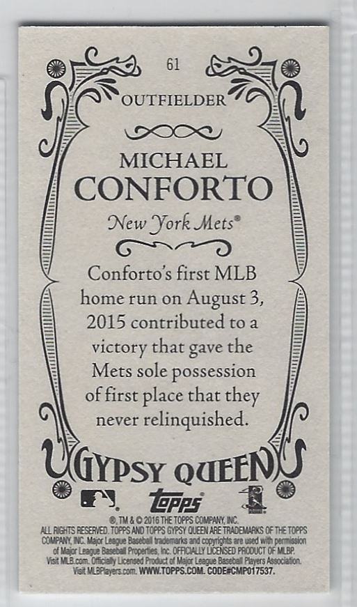 | 2016 Topps Gypsy Queen Mini Box Variations Michael Conforto RC #61 READ&SAVE, | ||||||||||||||||||||