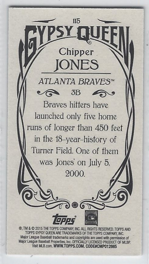 | 2015 Topps Gypsy Queen Mini Box Variations Chipper Jones #115 READ&SAVE, | ||||||||||||||||||
