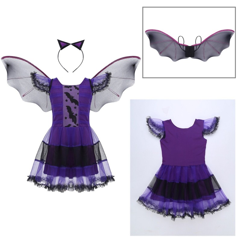 Kids Girls Vampire Bat Princess Costume Mesh Tutu Dress Halloween Fancy Outfits