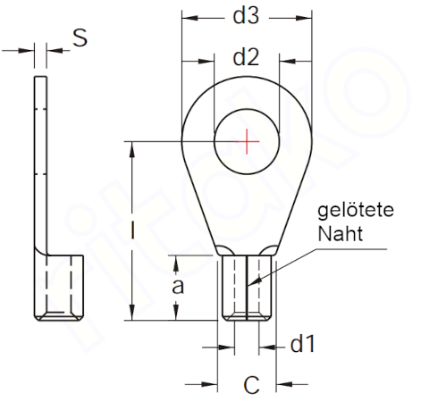 Maße DIN Ringkabelschuhe blank bis 70mm²