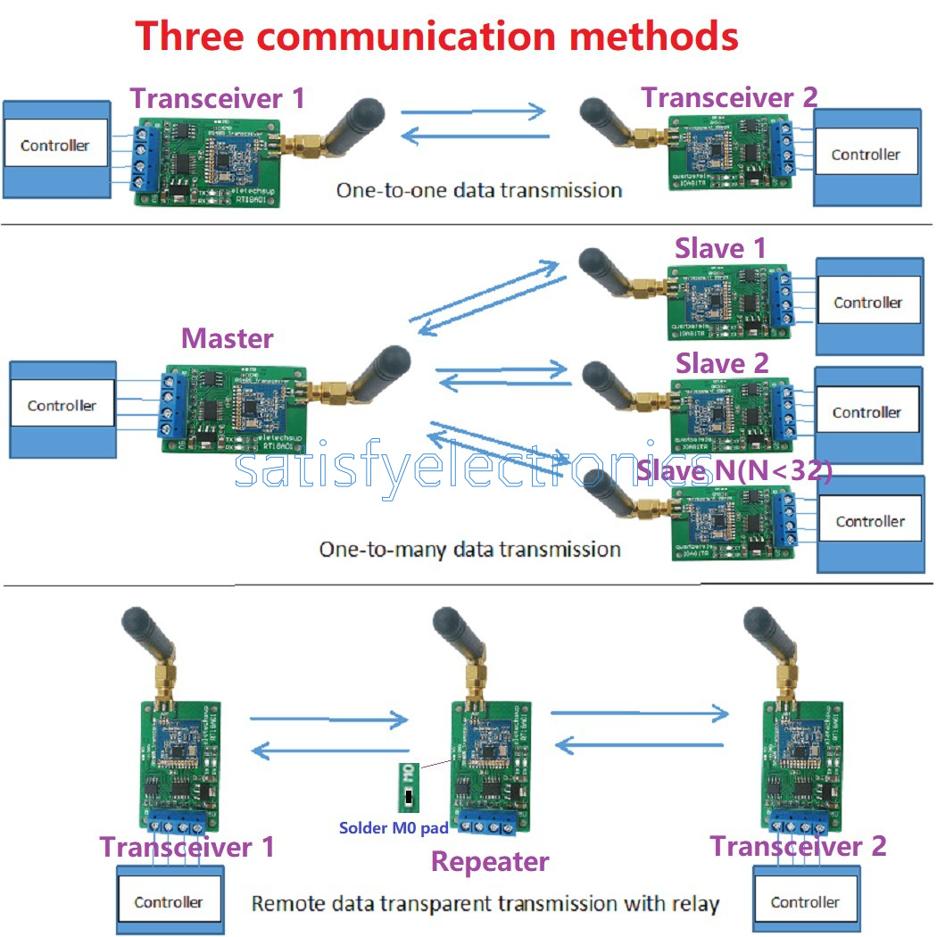 2 3PCS, module 1 sends data, module 2 acts as a repeater (multiple repeaters can be used), and module 3 receives data; delay sending and receiving distance.