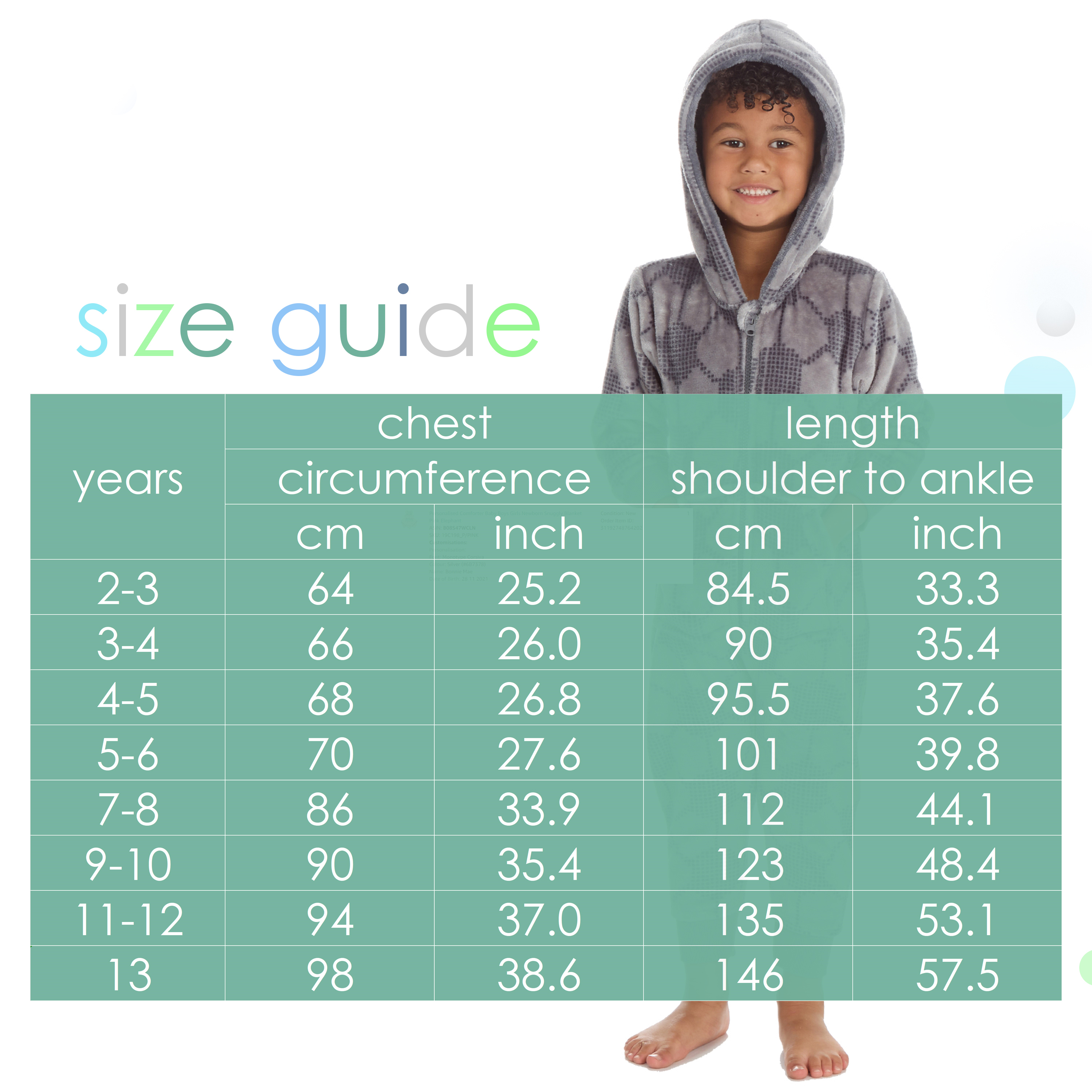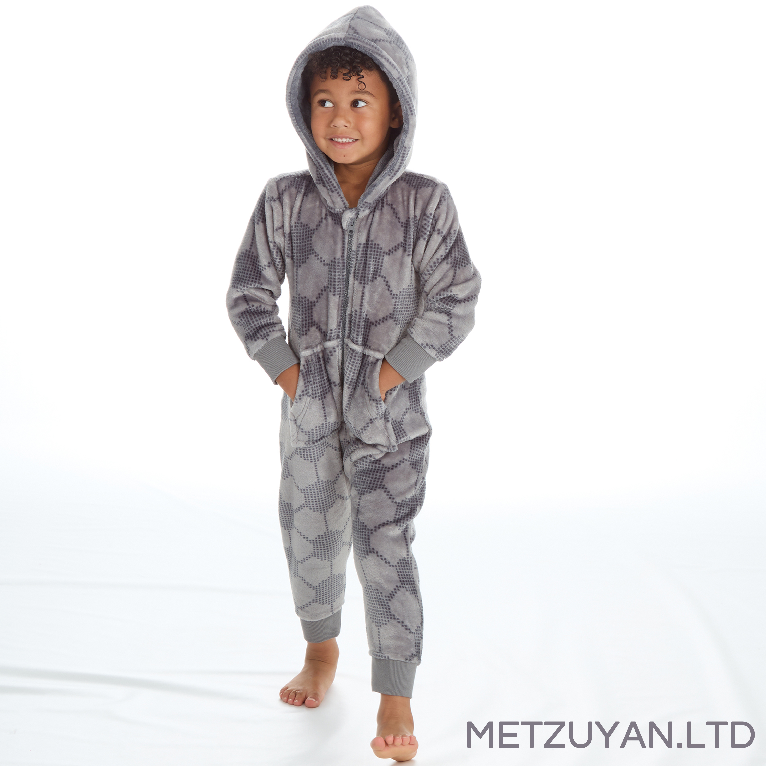 • KIDS BOYS HOODED ONESIE - This Boys novelty onesie is available in one grey football design and range of sizes: 2-3, 3-4, 4-5, 5-6, 7-8, 9-10, 11-12 and 13 Years.