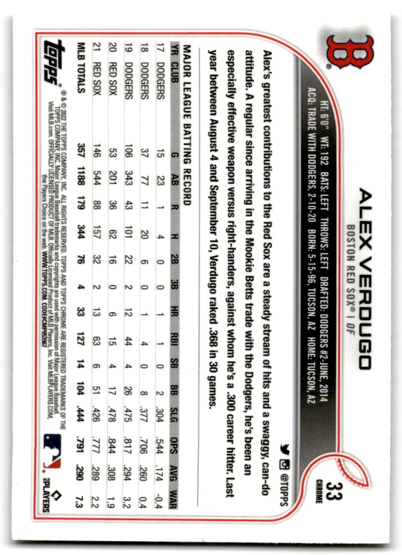 2022 Topps Chrome Prism Refractor 33 Alex Verdugo