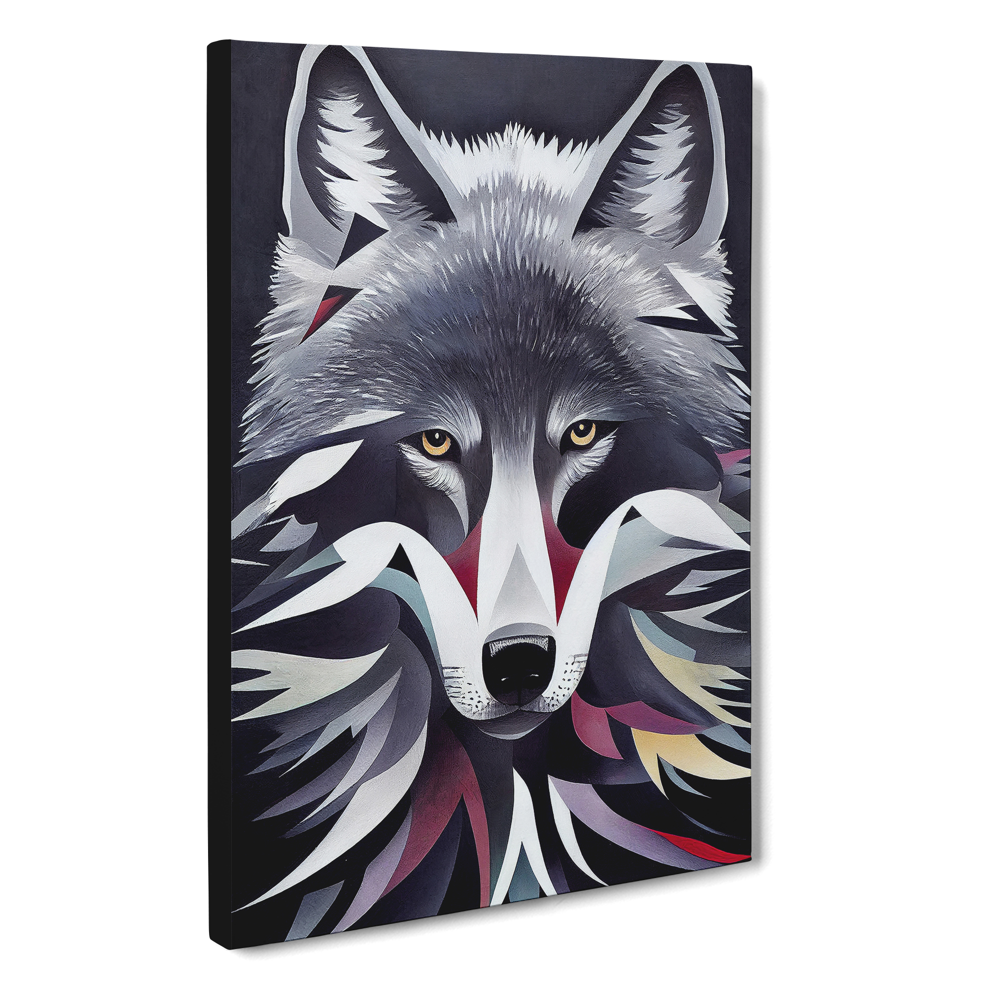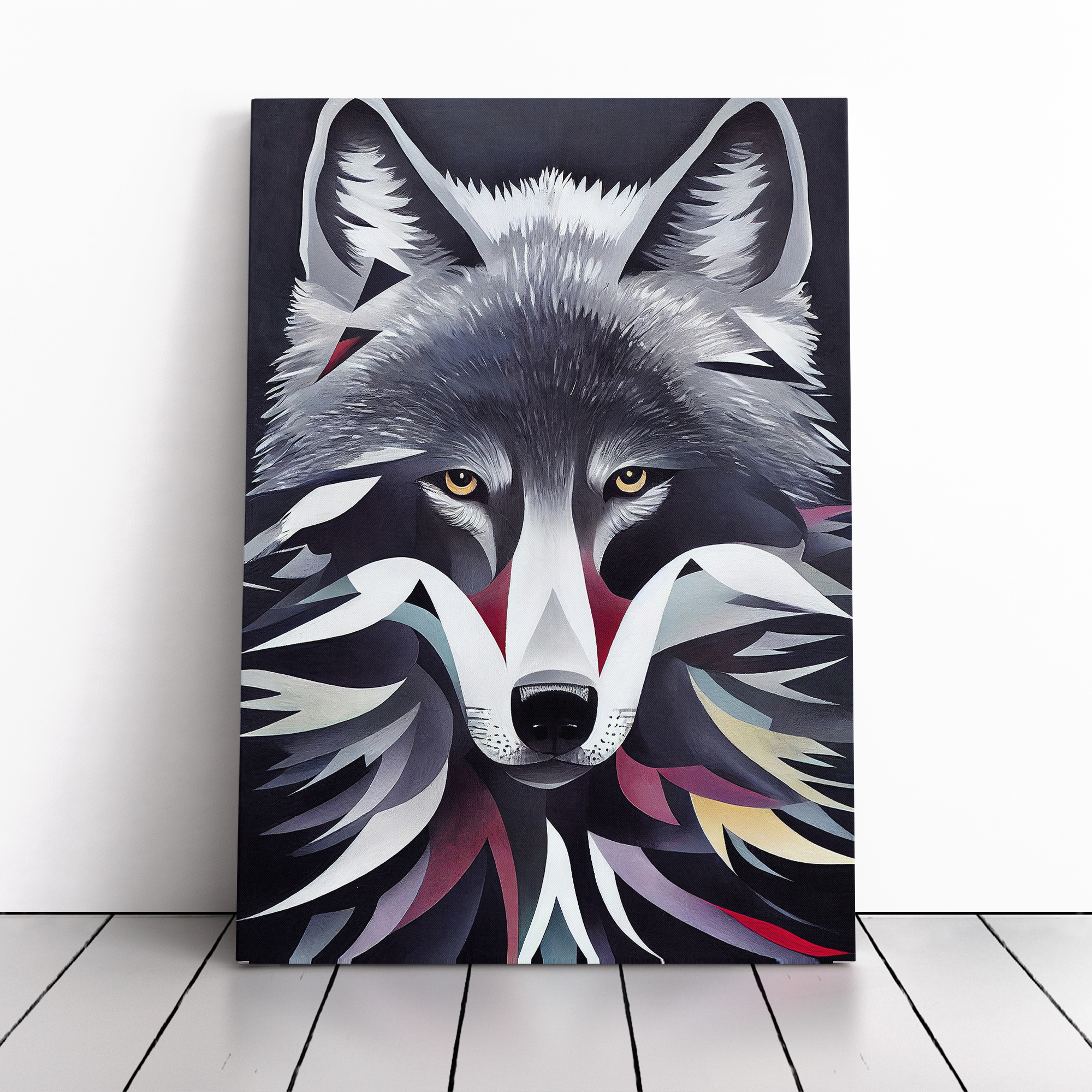 Transform your living space with our framed canvas wall art prints. Designed to elevate your home decor, this stunning picture titled Abstract Wolf Painting is crafted in the UK, and boasts a contemporary gallery wrapped finish. Utilising high-quality inks and materials, the colours of the wall art print are rich, vibrant, and true to life. The canvas is stretched over a 30mm deep frame creating a stylish wall art picture that is ready to hang in your living room, lounge, bedroom, dining room and home office.