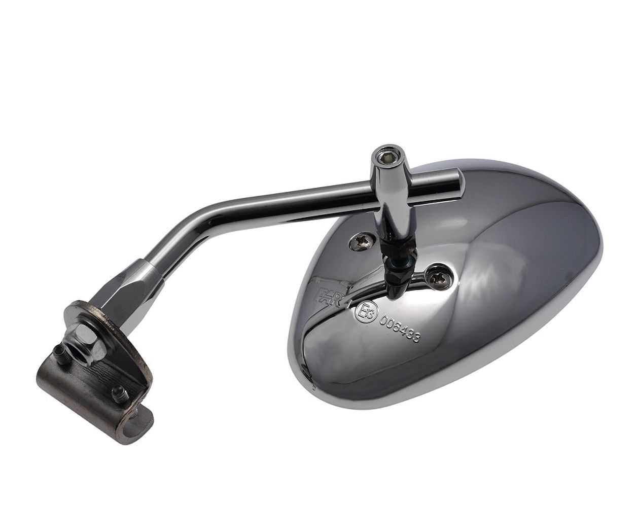 Spiegel FAR oval Chrom rechts mit Klemmbefestigung kompatibel für Piaggio / Vespa Classic Smallframe Largeframe Universal