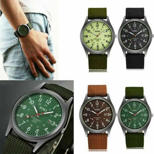 UK Mens Military Army Date Canvas Strap Analog Quartz Sport Wrist Watch Gift