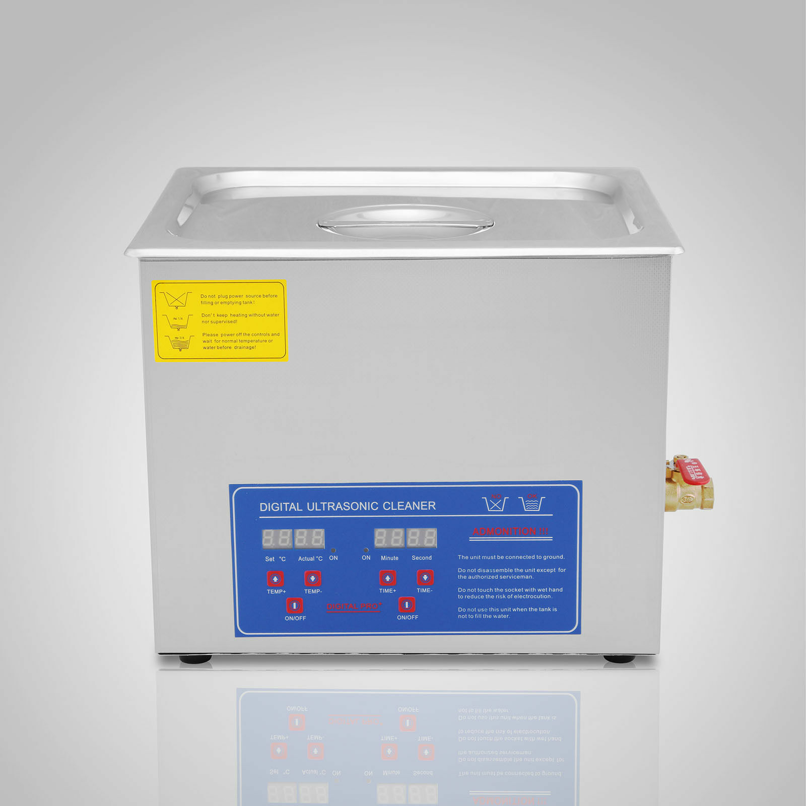 Ten sets of built-in powerful transducers can strengthen the ultrasonic power and make superior cleaning outcome. It is utilization of digital program in ultrasonic cleaner to control the unit, according to the quantity and condition of the items to be cleaned to choose a working cycle time. As a result, it is more convenient and efficient than hand wash, steam cleaners, high pressure water jet cleaning or other machines.