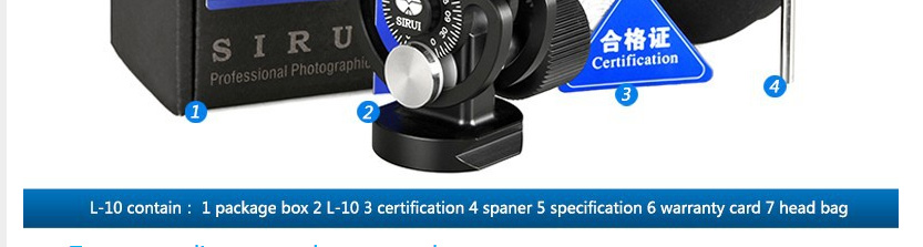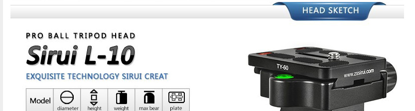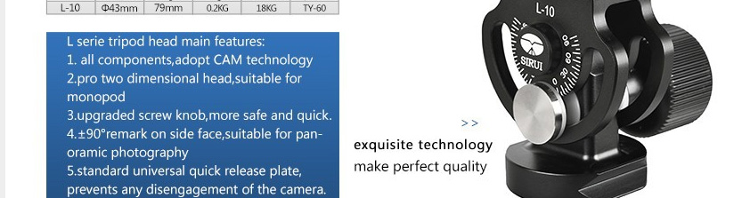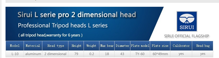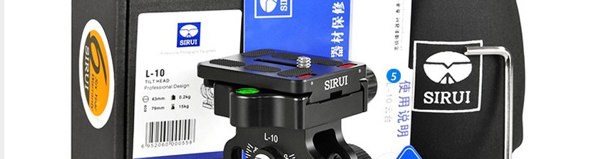 The Sirui L-10 Monopod Tilt Head is designed specifically for use with Sirui P Series monopods. It has a quick-release base that's compatible with Arca-style plates for convenience, and calibrated markings showing the tilt of the head, from 0 to 90 degrees. A built-in bubble level helps you keep everything on the level. This lightweight head weighs just 11.6 oz and supports up to 33 lb. A quick-release plate is included.