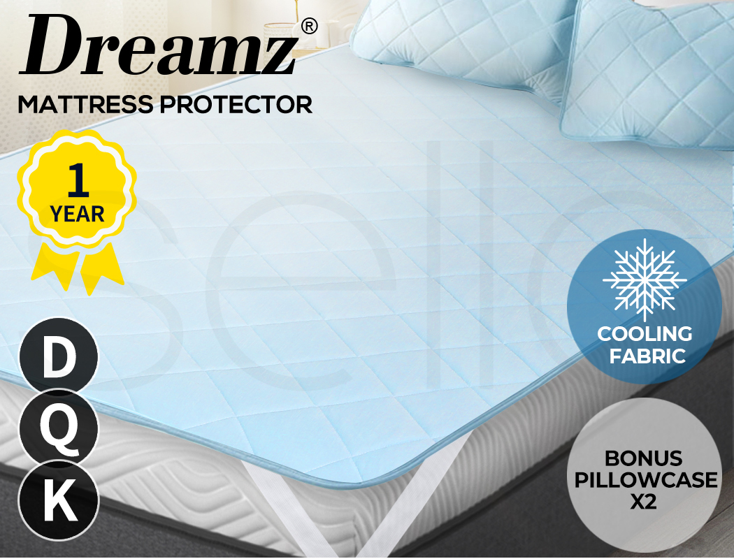 Dreamz Cooling Mattress Topper Pillowtop Luxury Bedding Mat Pad Protector Cover