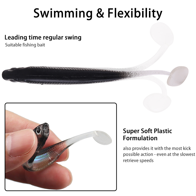 1. Lifelike Swimming Action: Paddle tail design with super soft material brings extremely enticing swimming action to attract hungry fishes. Closely mimics the appearance and swimming action of a real bait fish, exactly what hungry fishes cannot ignore.