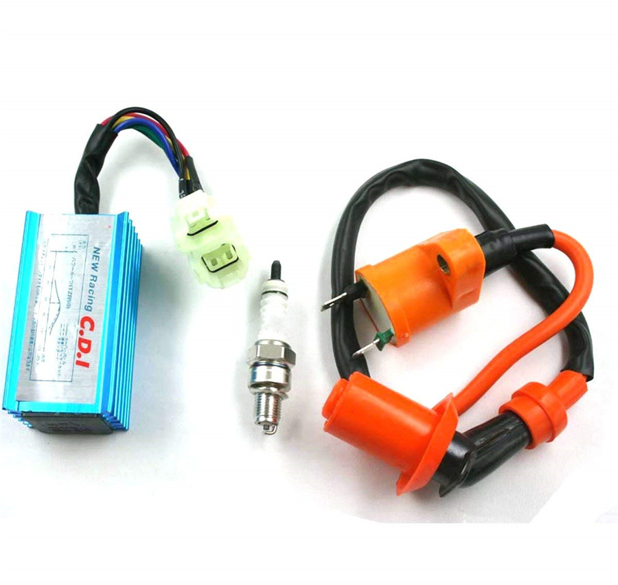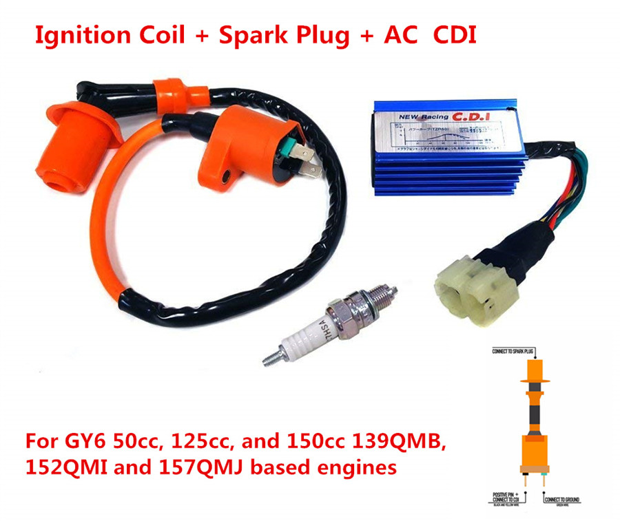 This New 6 pins racing high performance CDI + Ignition Coil + Spark Plug for Gy6 50cc - 150cc Scooter ATV