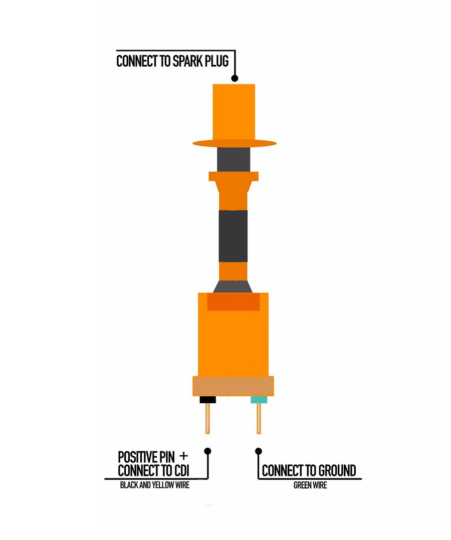 High tension performance racing ignition coil for 50cc QMB139 and 150cc/125cc GY6 engine based scooters, ATVs, Go Karts, Mopeds.