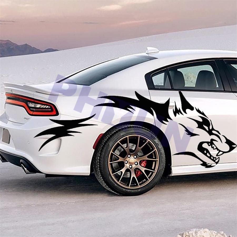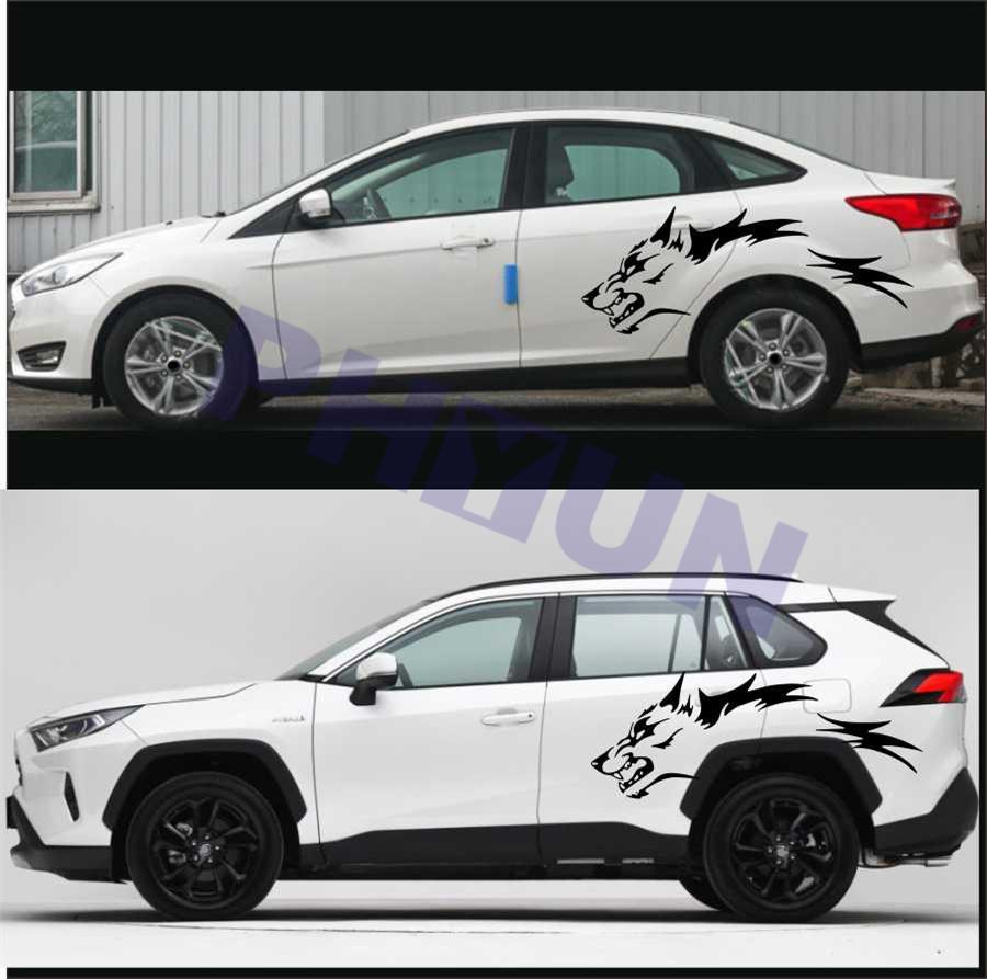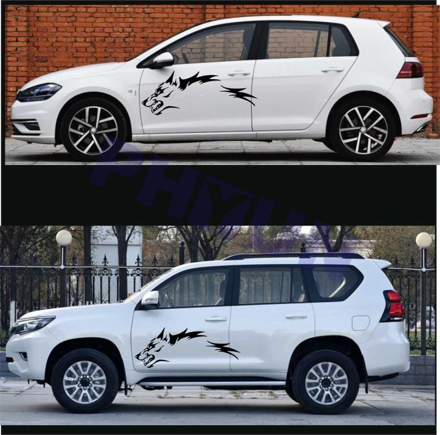 2pcs Car Stickers Running Wolf Fashion Vinyl Decals Door Side Pickup Vehicle Truck Car Sticker