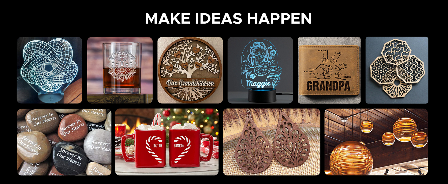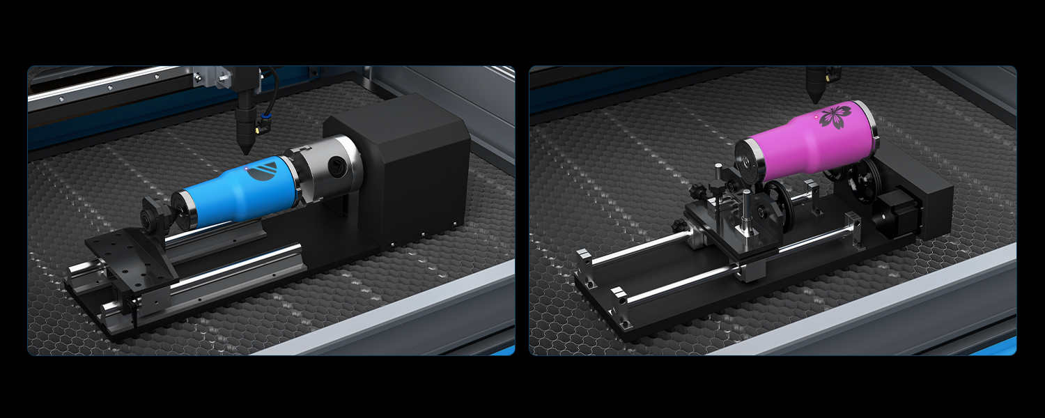 Compatible with any rotary axis(not included) on the market, this laser machine effortlessly performs 360° engravings on cylindrical and round objects such as cups, bottles, flasks, tubes, pipes, bowls, bracelets, and more!