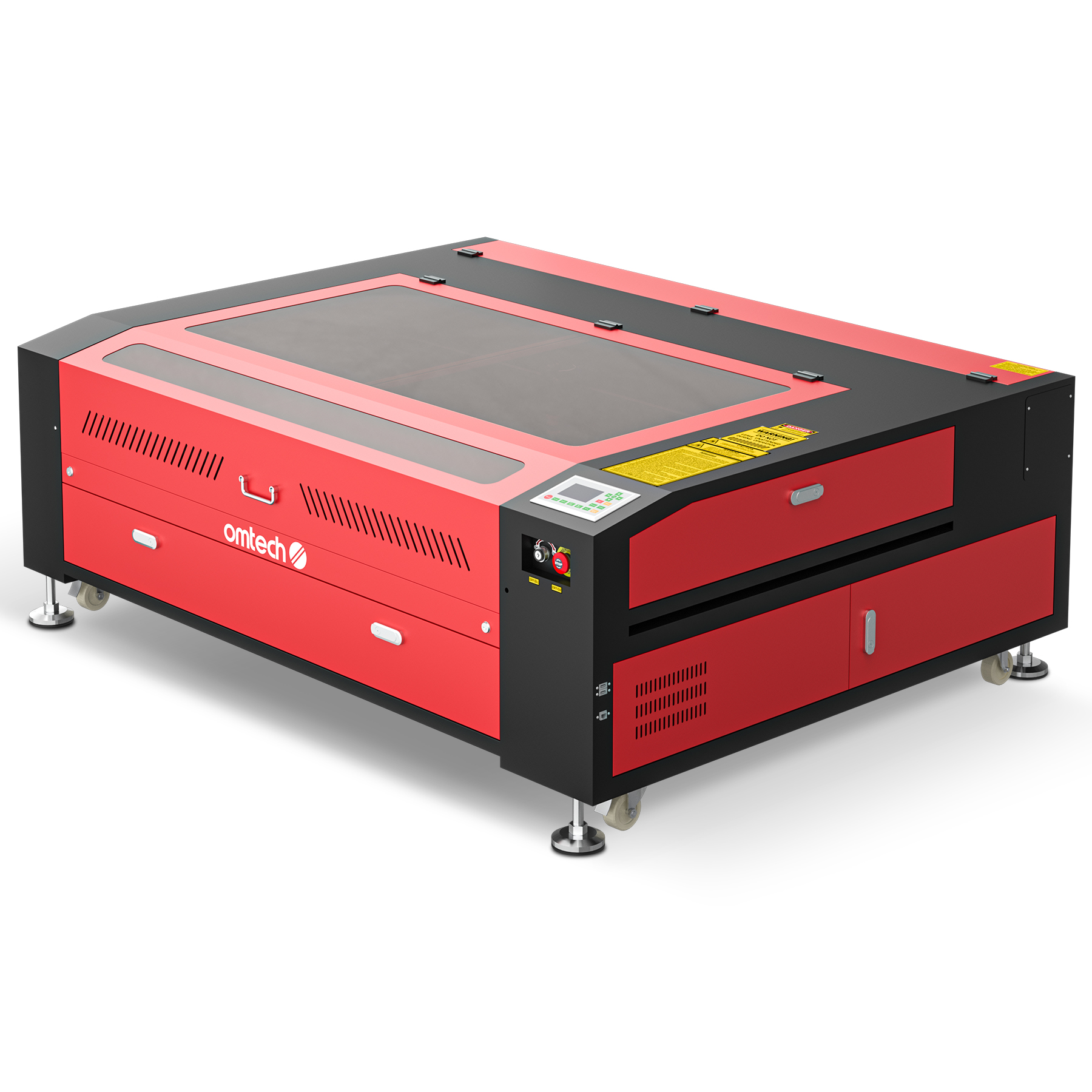 130W CO2 laser engraver continues to uphold our high standards with its dual 35x50 inch workbeds, long-lasting laser tube, rapid autofocus, efficient exhaust system, and front, back, and side pass through doors that allow large pieces to be worked on. It provides precise engraving on a variety of nonmetallic materials including wood, glass, acrylic, leather, fabric, cardboard, and more at speeds up to 23.6 ips, creating stunning personalized designs for home decoration, event celebrations, and business production. Safe as can be, this laser engraver and cutter automatically cuts off the laser beam if the protective cover is opened and provides an installed air assist to blow debris clear of the laser as it is created. When your work is done, just unlock the casters and wheel it anywhere you want for easy storage and quick transport.