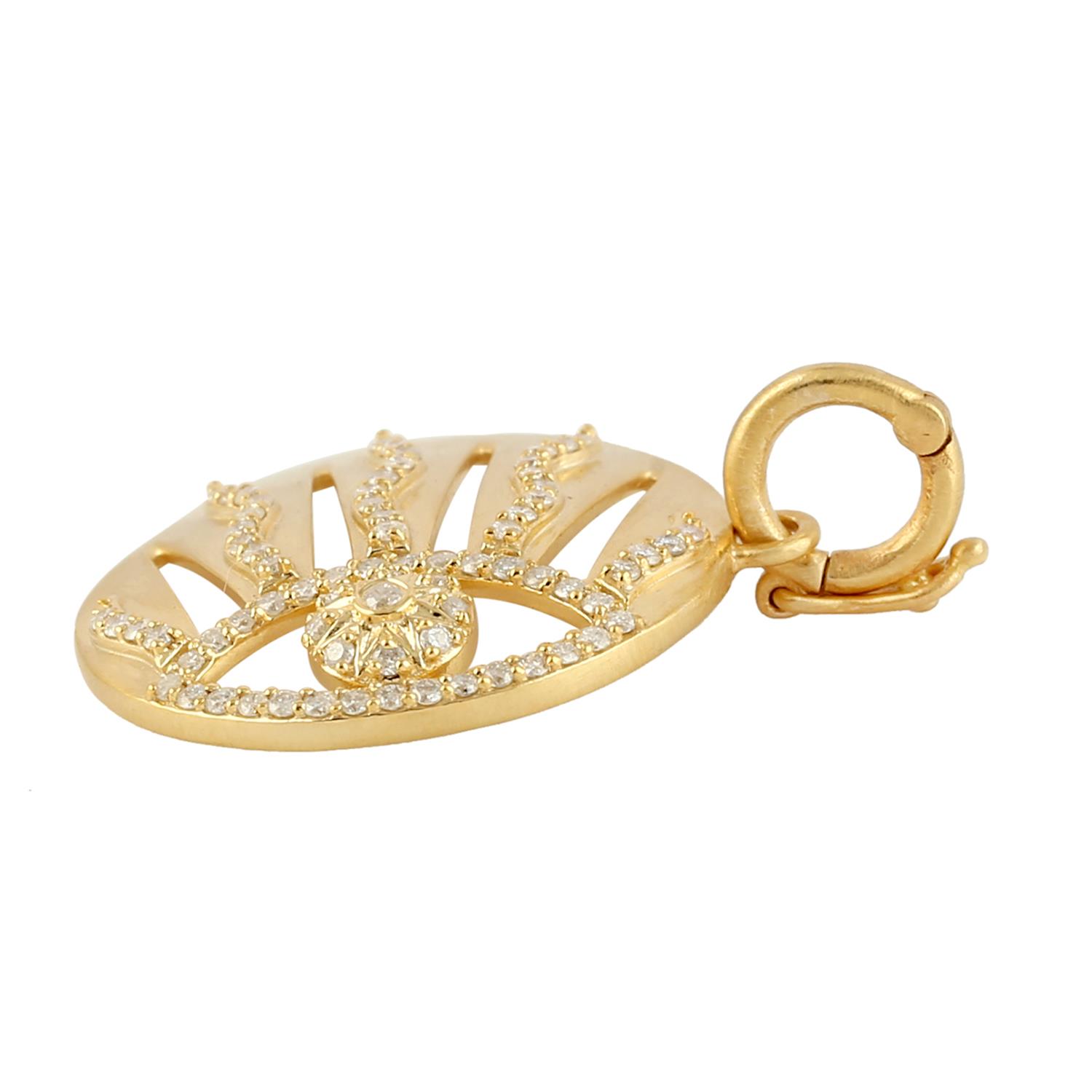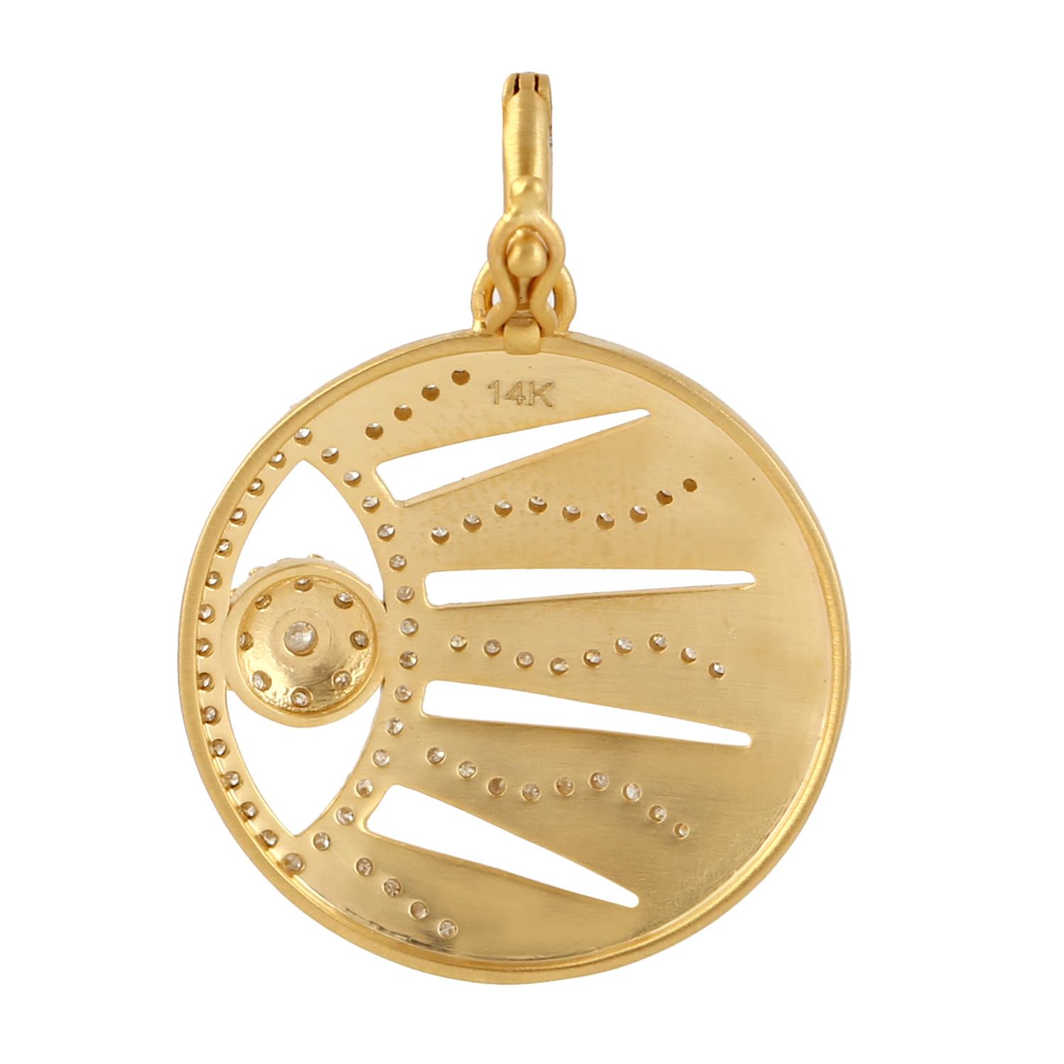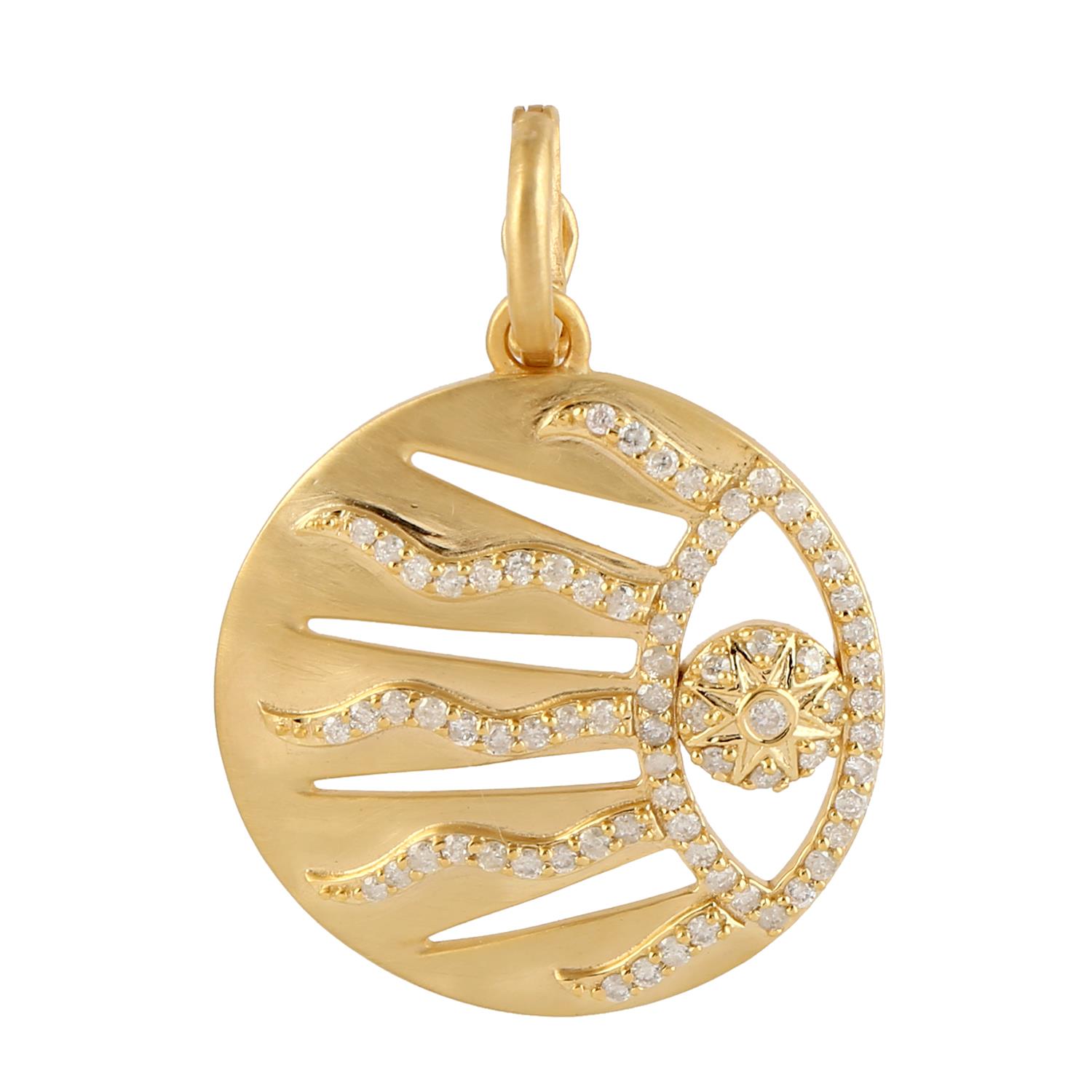 0.41Cts Diamond Sun Brust Design Round Pendent 14k Yellow Gold