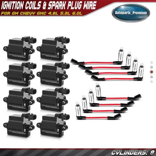 8x Square Ignition Coils & Spark Plug Wire Kits for Chevrolet Silverado 1500 GMC