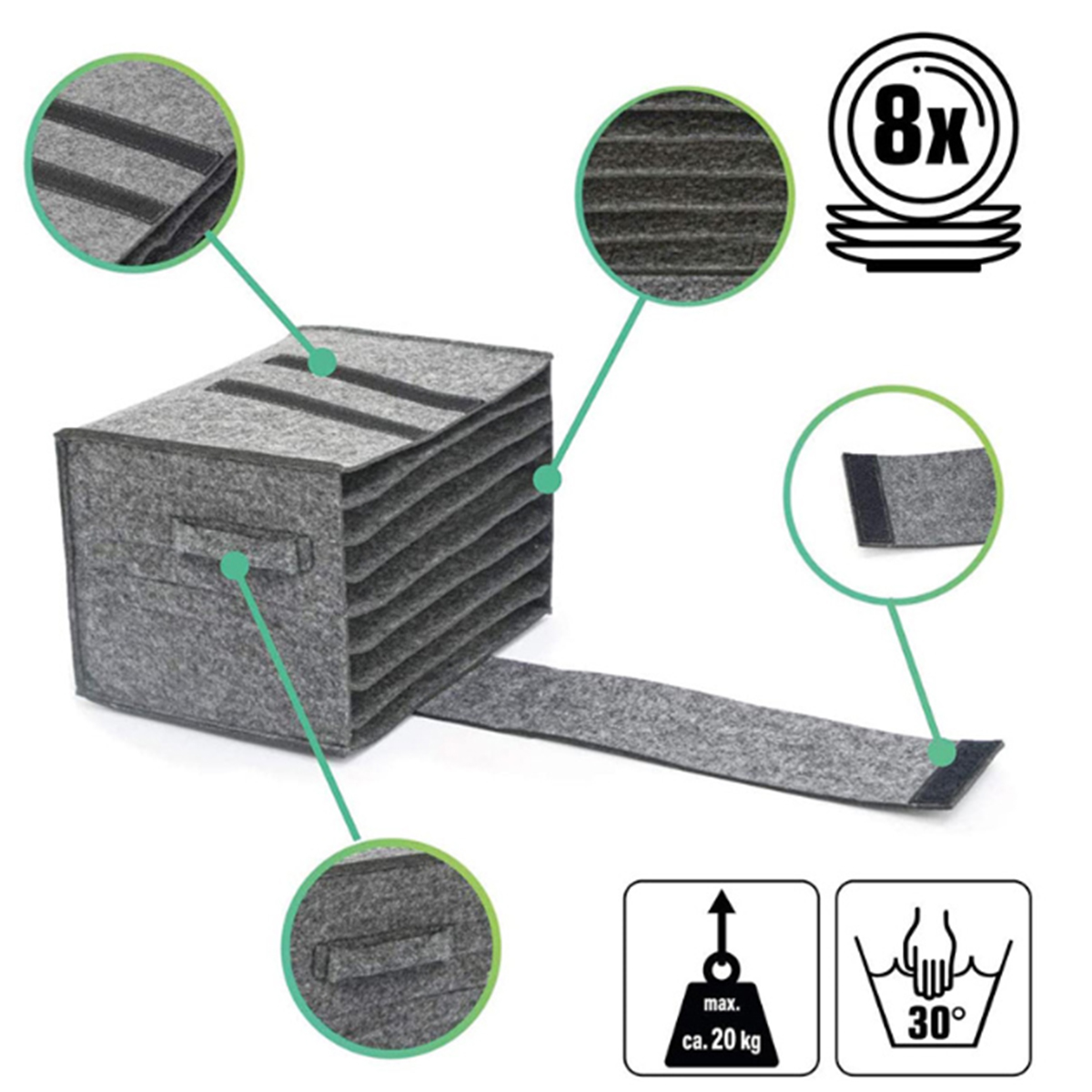 -[Excellent protection for your plates] Our plate carriers perfectly protect your plates and prevent them from rattling, perfect for your motorhome. This felt cutlery organizer with a flexible scratch-resistant compartment is better for storage than comparable foams and is more adaptable, making it perfect for motorhomes, caravans or motorhomes.