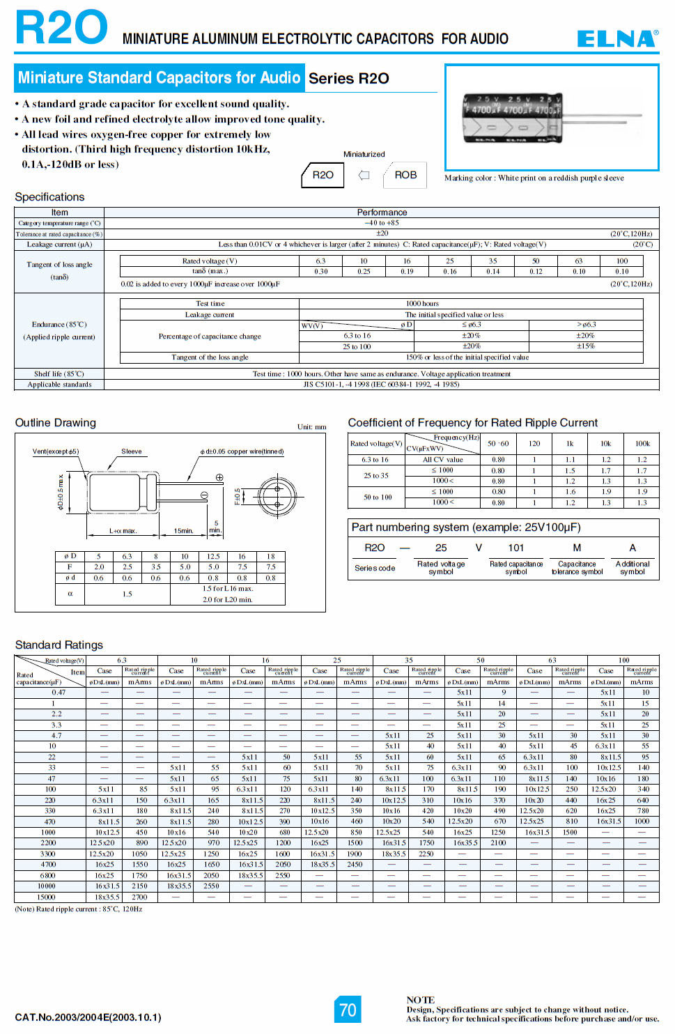 [Name]: ELNA R2O series 470uF/10V electrolytic capacitor for audio