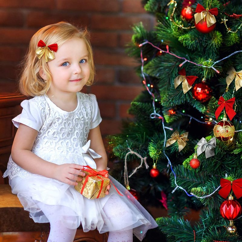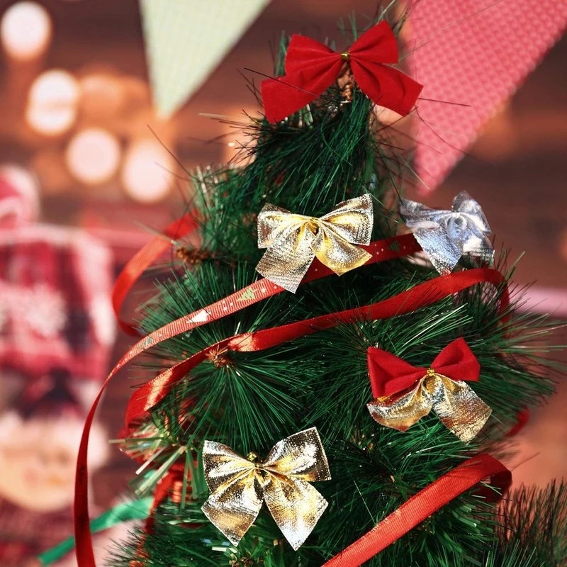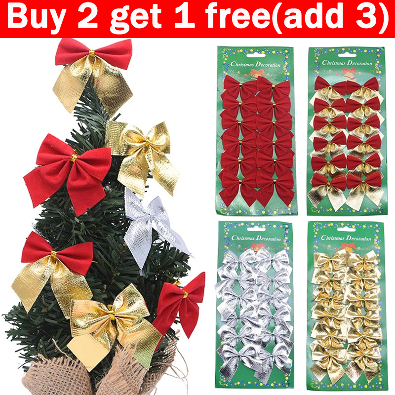 12pcs/set Bows Christmas Tree Bowknot Ornaments Gift Present Party Xmas Decor