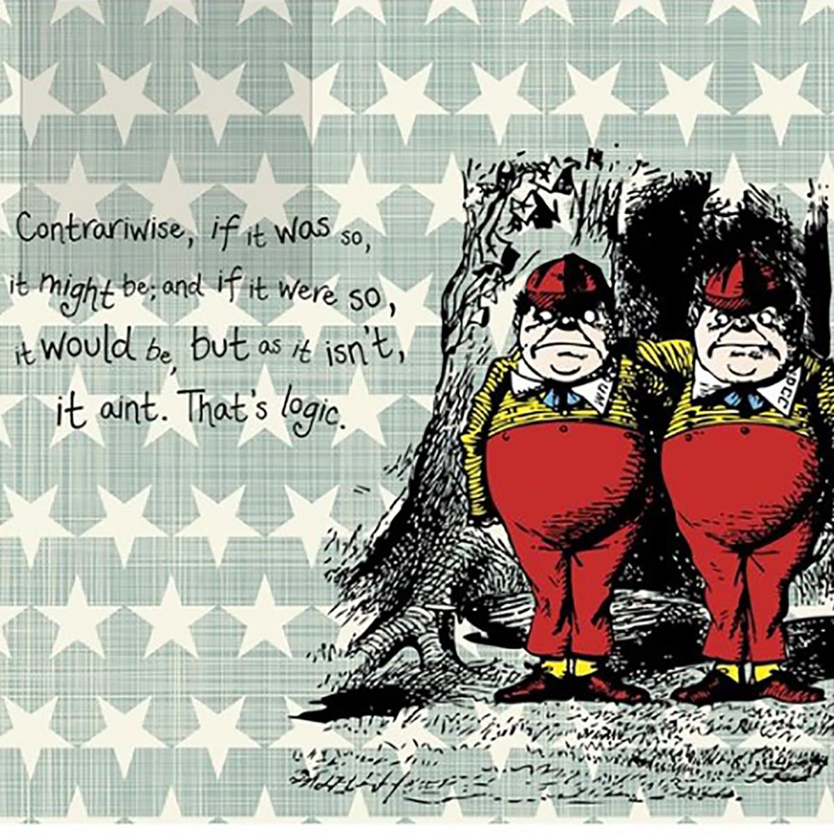 Transform your child’s bedroom with this amazing Tweedle Dee and Dum wallpaper mural from Ohpopsi. Features a stunning print of the 2 characters, set on a chequered background in sage green and white for a truly mesmerising wallcovering.