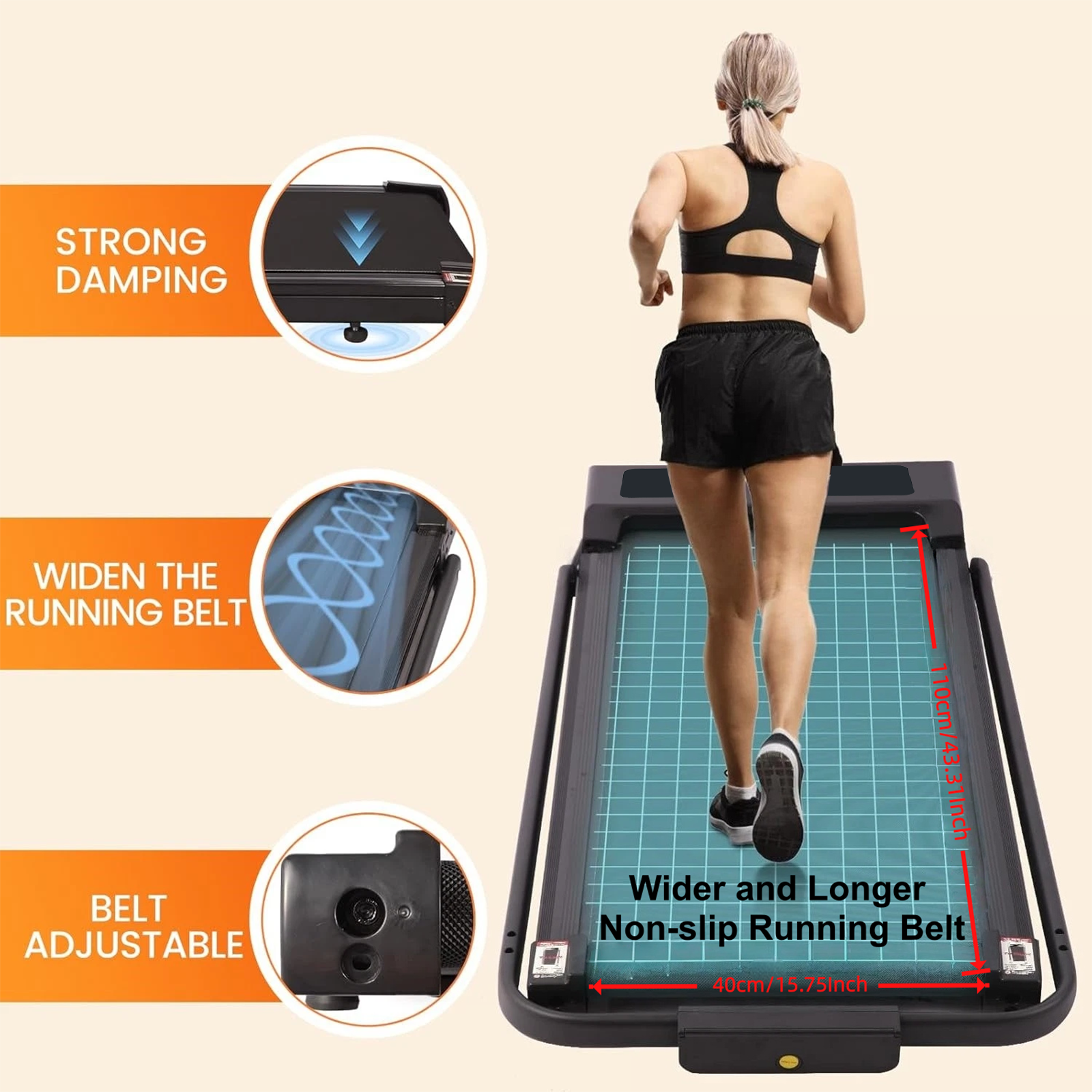Running belt width: 39 x 104 cm