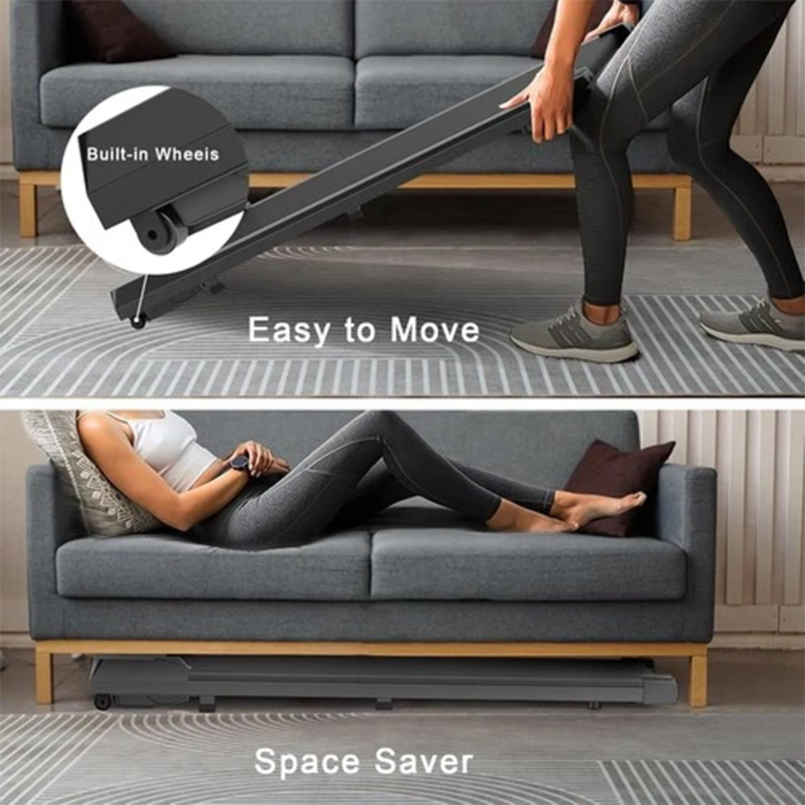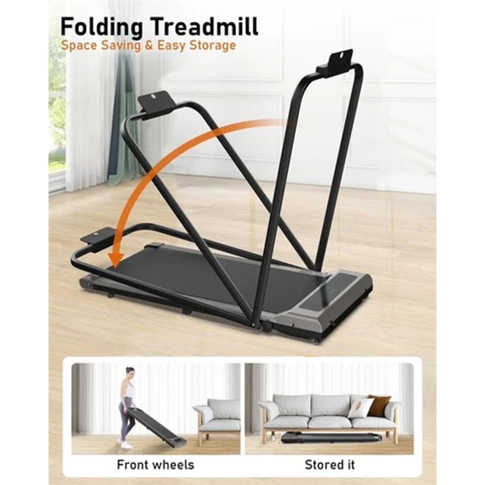 The treadmill arrives fully assembled and can be used directly after unboxing! It is easy for moving and storage or stores with wheels.