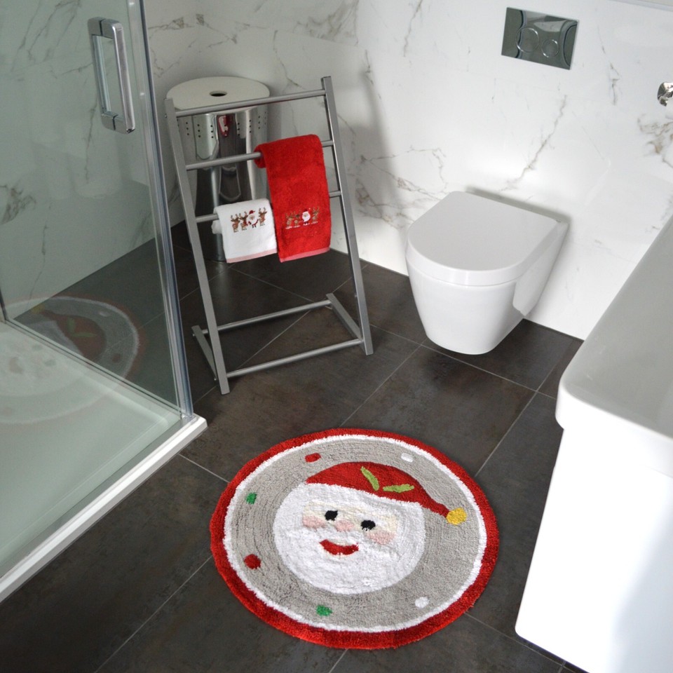 Christmas Round Bath Mat Rug Non-Slip Santa Rudolph Hand Tufted Soft & Absorbent